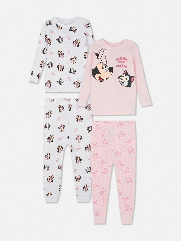 Two pairs of full-length PJs with Disney’s Minnie Mouse character graphics.