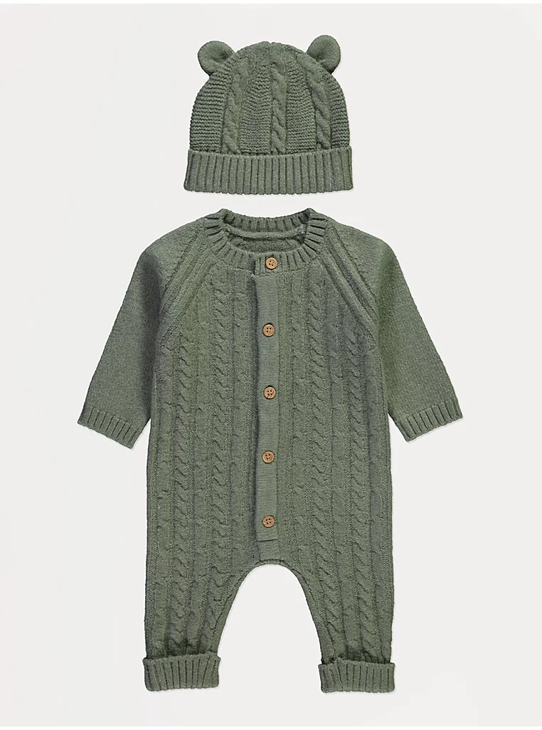 Khaki Knitted All In One and Hat 2 Piece Set